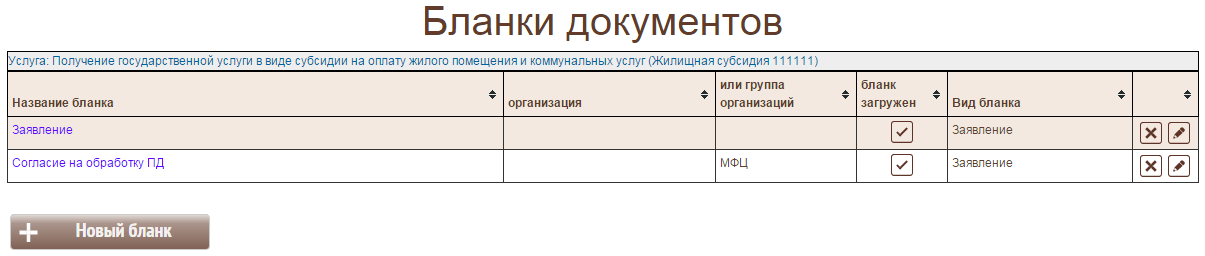 Для каждой услуги необходимо определить пакет документов-шаблонов: