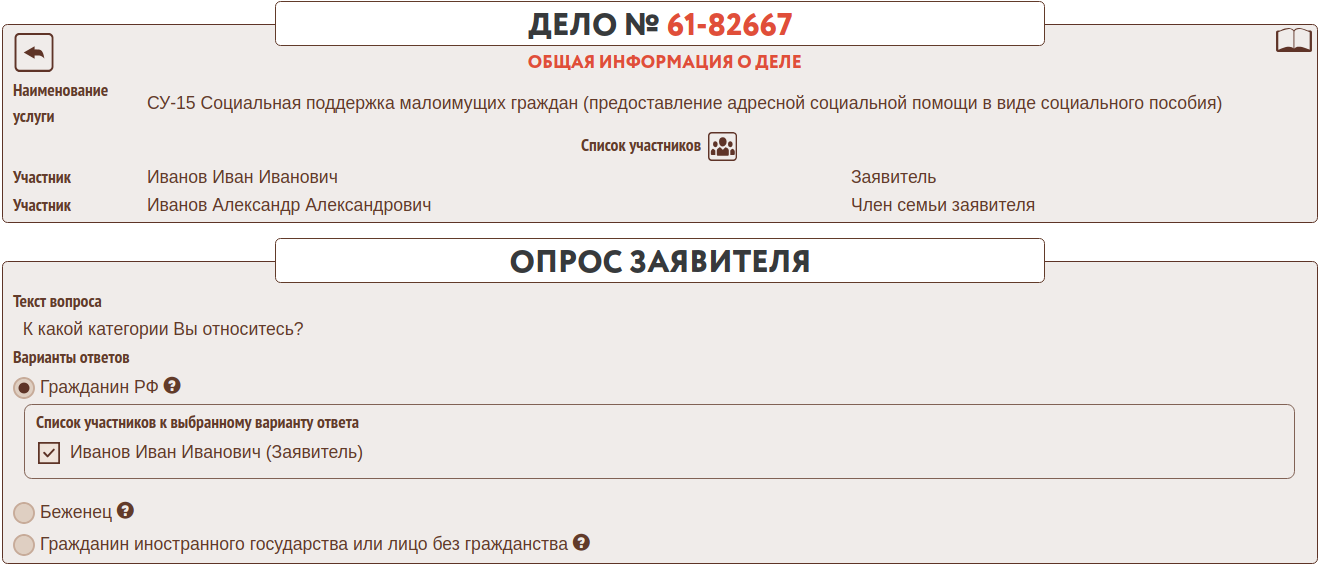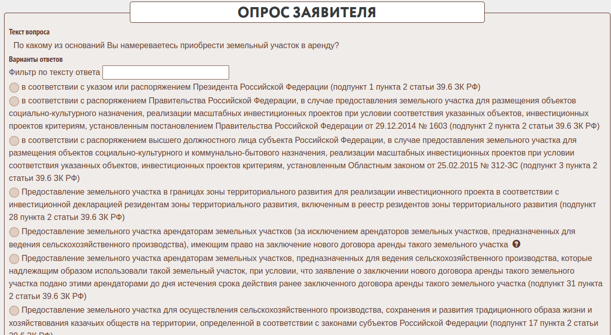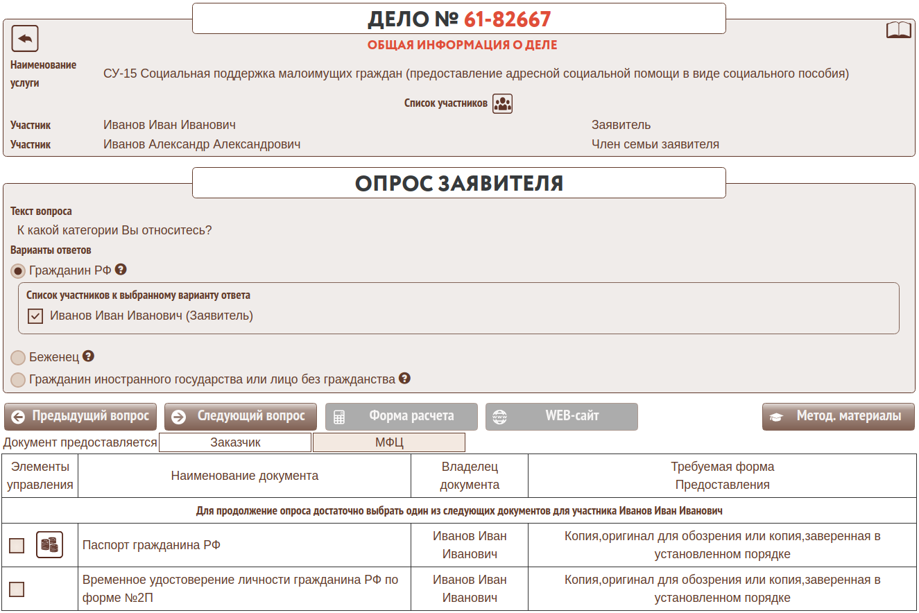 Далее начнется опрос Заявителя для определения состава документов в соответствии с его жизненной ситуацией.