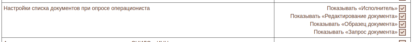 Выделенные могут быть скрыты в форме "Общие настройки", раздел "Настройки списка документов при опросе операциониста"