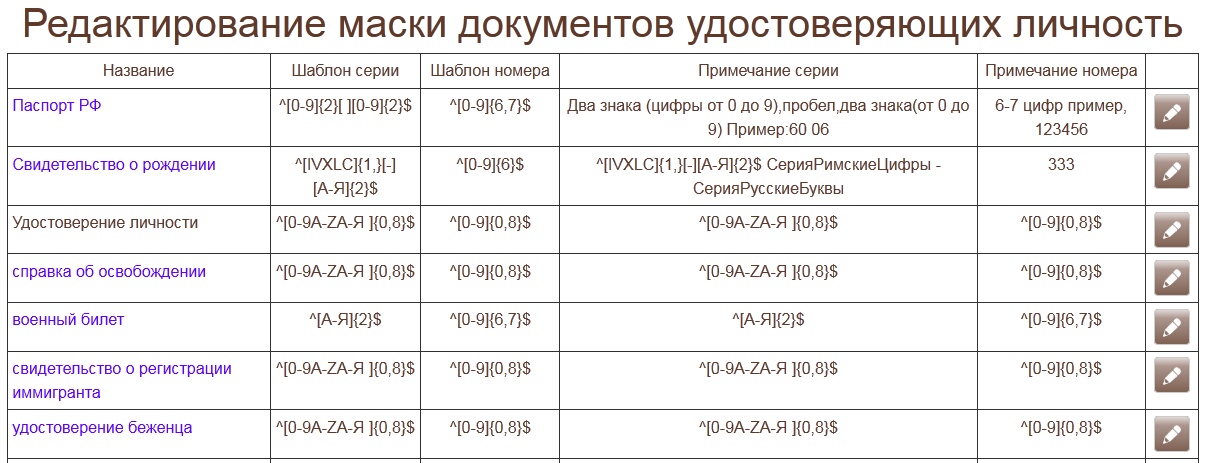 при внесении серии и номера документов, идет проверка по их маскам, внесенным в справочник