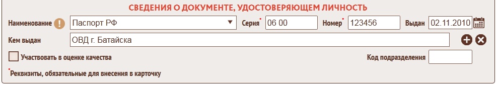 При заполнении раздела сведений о документе, удостоверяющем личность,