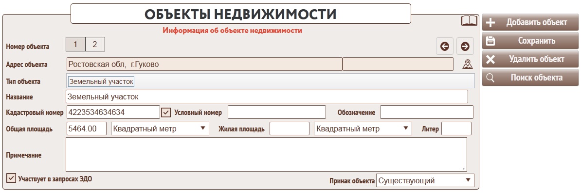 После окончания заполнения/редактирования всех необходимых полей объектов недвижимости необходимо нажать на кнопку