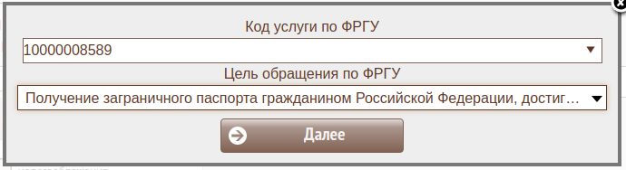 Если у услуги указаны несколько кодов ФРГУ, то операционисту предлагается указать какие коды применяются к данному делу. Если Идентификатор услуги в ФРГУ, Идентификатор цели в ФРГУ, по одному на услугу данный вопрос пропускается.
