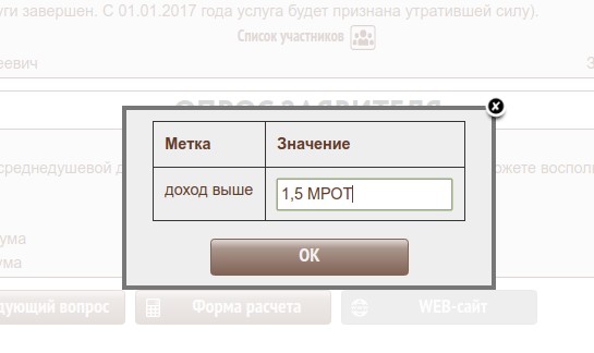 По нажатию на кнопку "ОК" новое значение метки сохранится в деле. Если не менять значение метки, то в деле после опроса сохранится значение по-умолчанию, проставленное при составлении порядка оказания услуги. Эти метки могут быть использованы для печати заявлений после прохождения опроса.