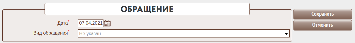 В зависимости от вида обращения состав полей будет отличаться