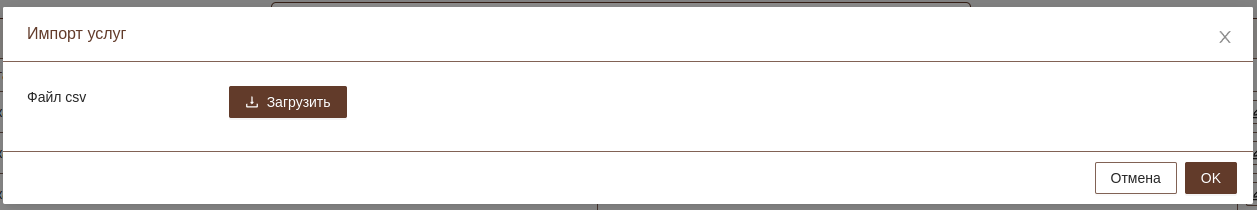 При необходимости можно импортировать список услуг из файлов выгруженных с портала СМП. пример csv файла
