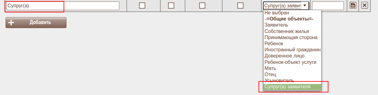 Заполнение раздела "Сведения о супруге заявителя" заполняется данными участника с типовой ролью "Супруг(а) заявителя".