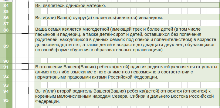 Набор опций (отметок) в форме определяется бланком xlsx.