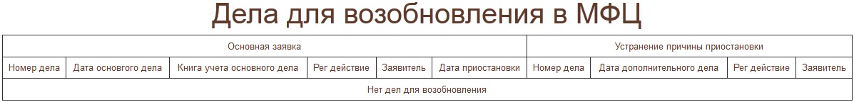 меню: Менеджер --- Отчеты Росреестра --- Дела для возобновления