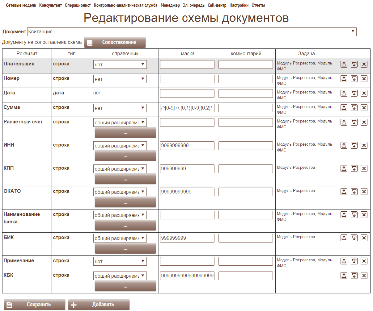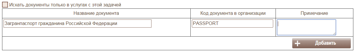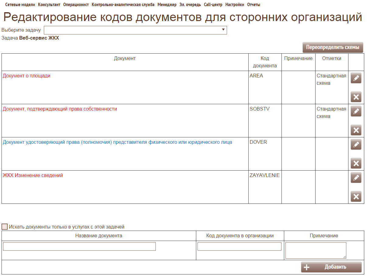 Для интеграции с различными информационными системами необходимо указать привязку документов в ИИС МФЦ с кодами в информационных системах ведомств. Для этого реализована возможность указать прямое соответствие документа в ИИС МФЦ и в ведомственной системе.
