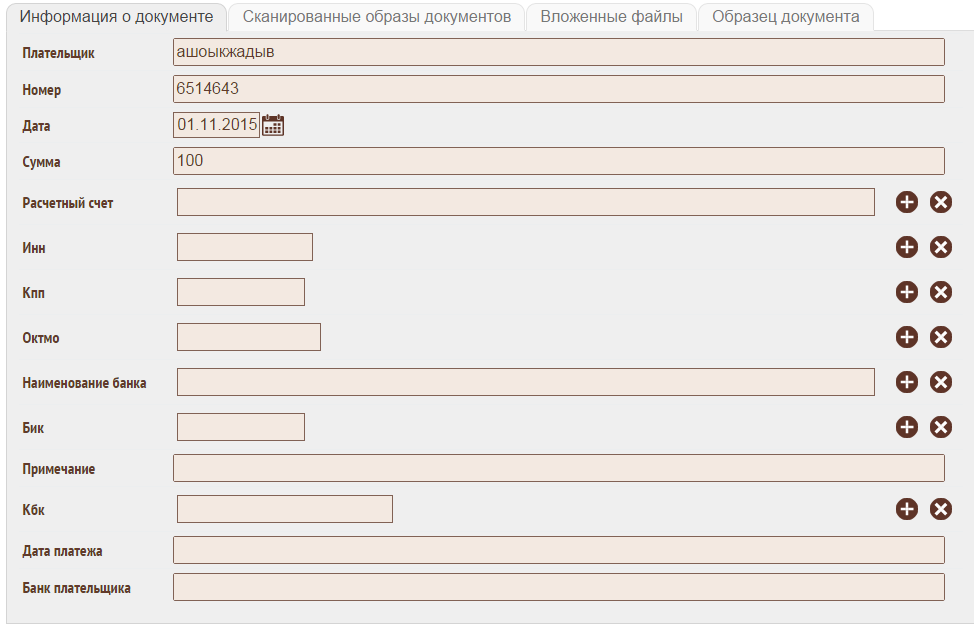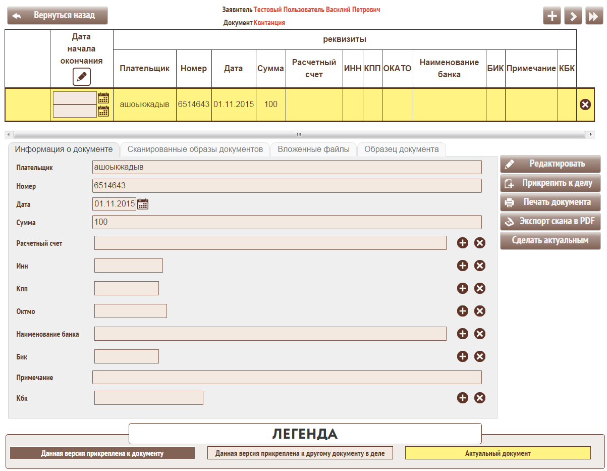 При просмотре этого же документа из пункта меню "Операционист"-"Документы заказчика" будут показаны все поля документа включая все задачи.