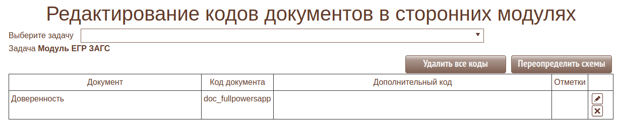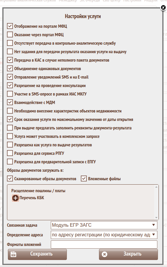 Для включения модуля необходимо указать в настройках услуги связанную задачу "Модуль ЕГР ЗАГС".