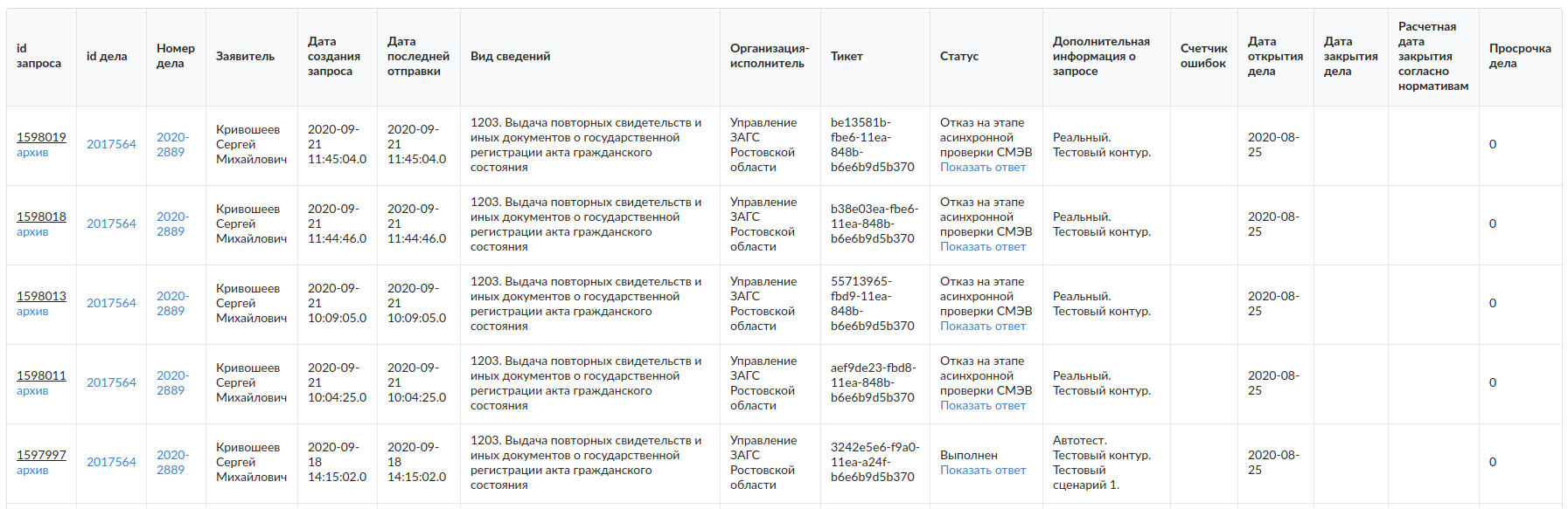 Доступна статистика обмена для анализа всех запросов, отправленных через СМЭВ 3.