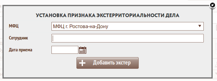 При отсутствии связи между МФЦ и невозможности заведения дела по экстерриториальности в штатном режиме существует возможность указать на деле что оно принято по принципу экстерриториальность.