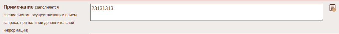 Справочник для поля Примечание (заполняется специалистом, осуществляющим прием запроса, при наличии дополнительной информации)