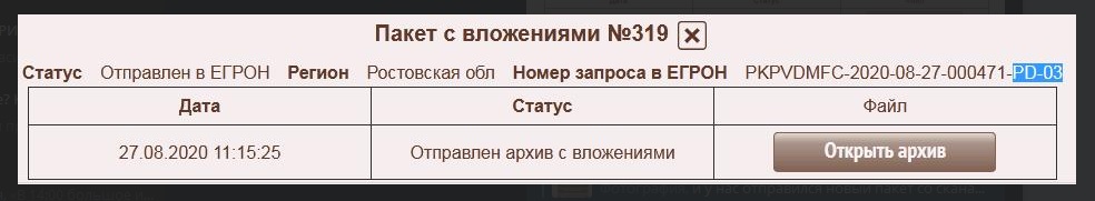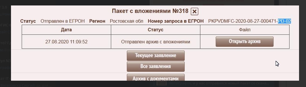 Формировать и отправлять пакет с документами можно несколько раз. При этом в Росреестре будет зарегистрирован каждый пакет под своим номером. При формировании будет выбираться актуальная информация о прикрепленных вложениях.