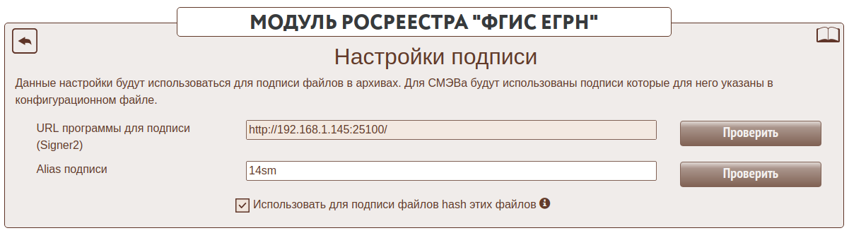 Для работы модуля ФГИС ЕГРН с локальной программой необходимо в настройка ФГИС ЕГРН указать "Использовать для подписи файлов hash этих файлов". Если с локальной программой возникнут проблемы, то подпись не будет создана для файлов и пакет уйдет без подписанных файлов.