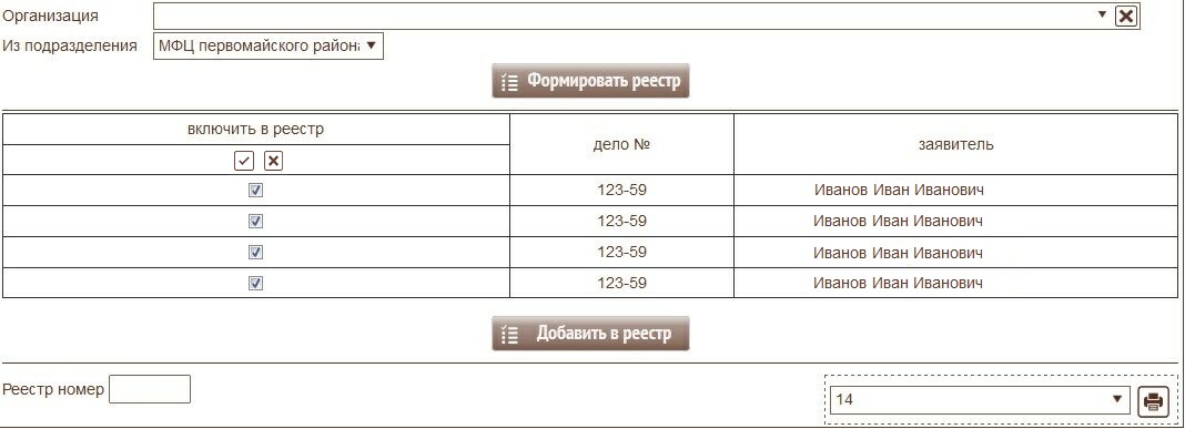 Если были выбраны дела для отправки в курьерскую службу, то при формировании реестров для курьера эти дела попадут в список планируемых дел для отправки.