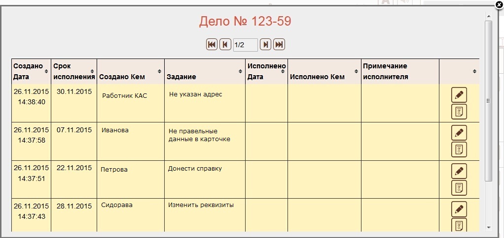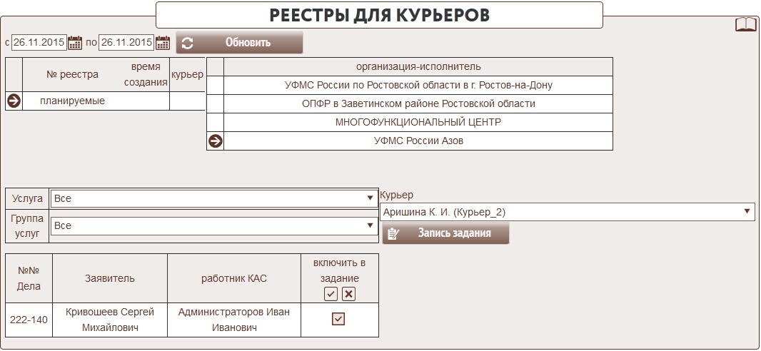 После исполнения работник КАС увидит в своем интерфейсе информацию что его задание исполнено.