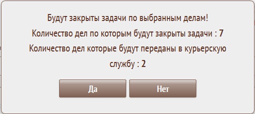 будет открыто модальное окно с информацией о количестве задач на выдачу и количестве дел для передачи в курьерскую службу.