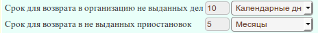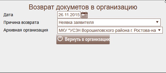 "Вернуть в организацию" - если пакет документов не был выдан в указанный срок