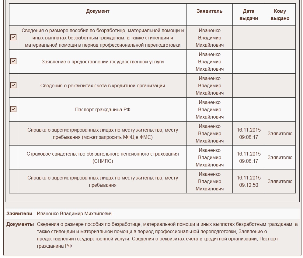 17. При выборе документов для выдачи будет показано скольким заявителям будет произведена выдача и список докуменутов.