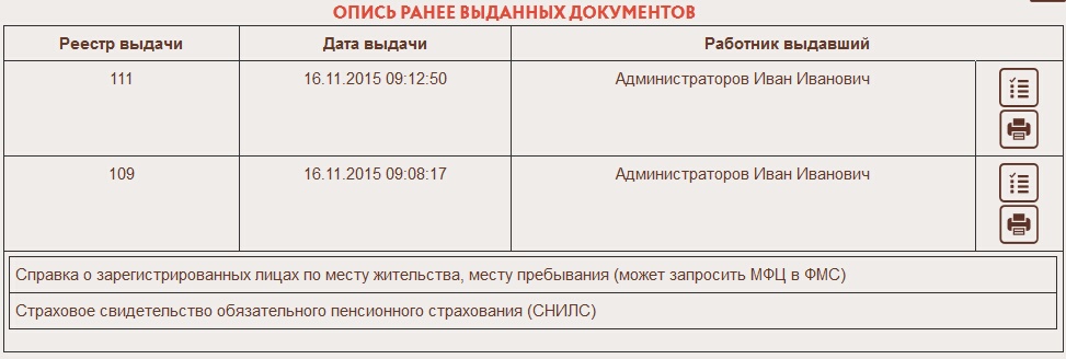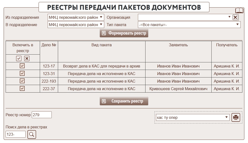 Механизм выдачи пакетов документов затронул реестры передачи дел между сотрудниками МФЦ и возврат дел в организацию. Теперь они работают по новому алгоритму. При передачи пакетов документов будет формироваться новый реестр (другой состав меток) в котором будет видно какие документы и для каких заявителей в нем передаются.