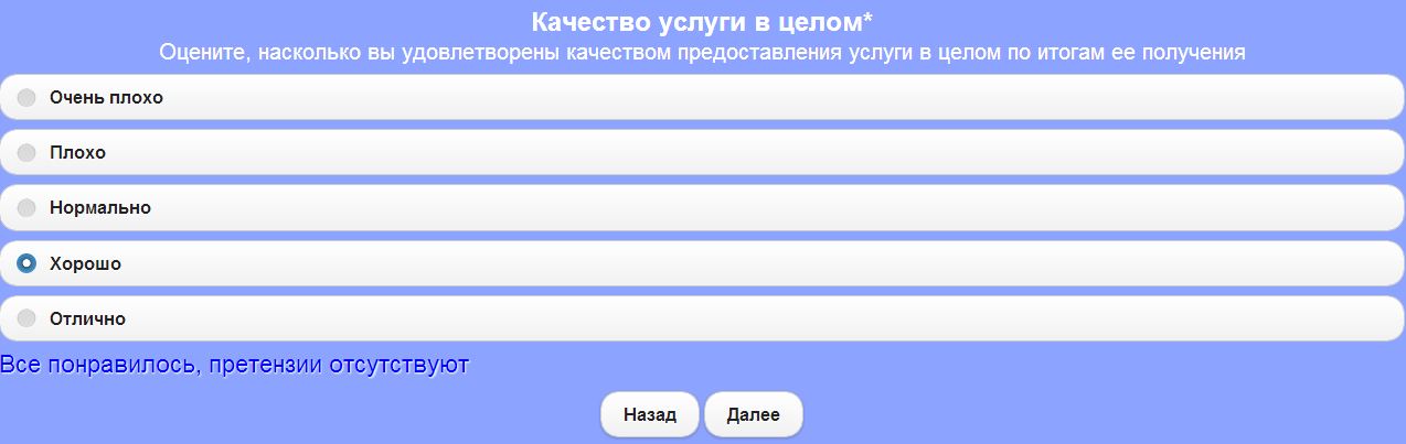 Если учлуга не участвуюет в СМС опросе ИАС МКГУ будет выведено следующее сообщение.