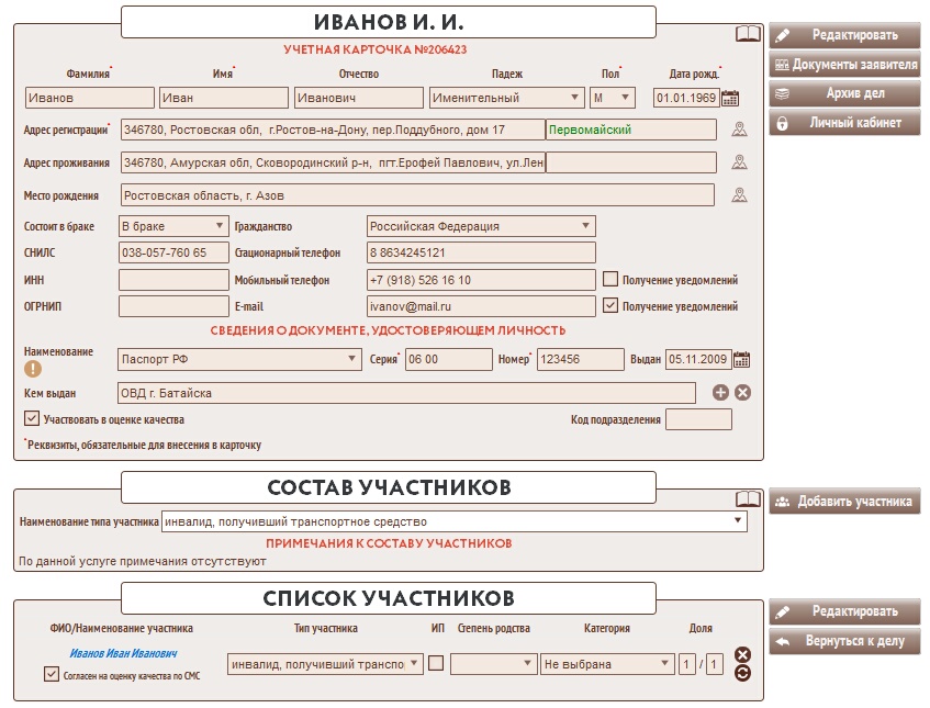 Если заявитлеь согласен необходимо указать участников дела для участия в смс оценке качества.