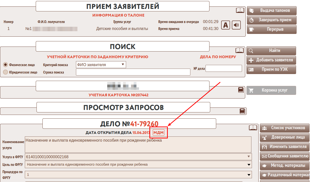 Если дело попало в статистику МДМ, это отображается значком рядом с датой открытия дела