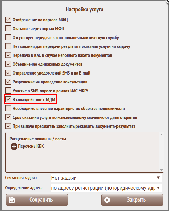 Для услуг, информация об оказании которых должна отправляться в МДМ в паспорте услуги->Настройке услуги указать Взаимодействие с МДМ