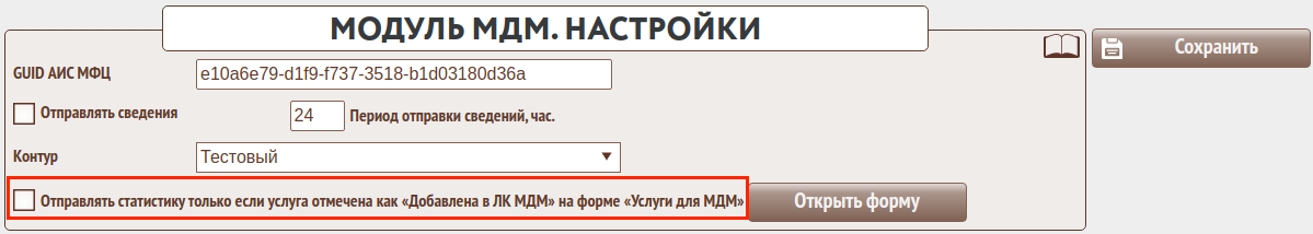 При установленной настройке "Отправлять статистику только если услуга отмечена как «Добавлена в ЛК МДМ»"