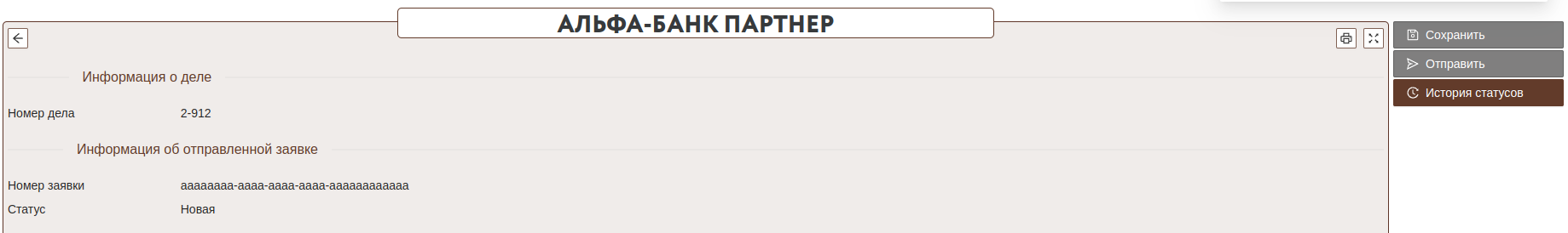 Далее оператор отправляет анкету в банк. При успешном получении анкеты банк вернет свой внутренний номер заявки. Если номер заявки успешно определен, система автоматически запросит текущий статус заявки.