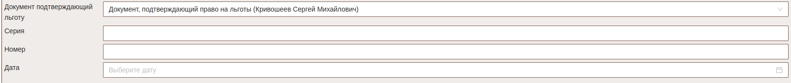 Если выбран документ на форме появятся дополнительные реквизиты этого документа, которые необходимо заполнить оператору.
