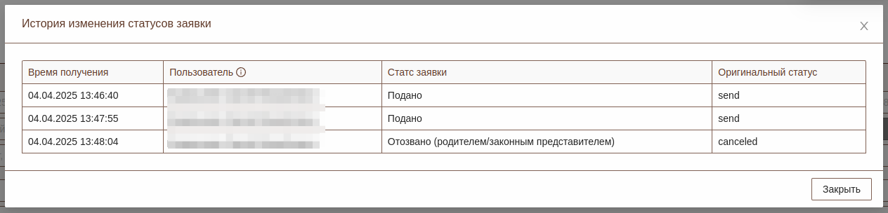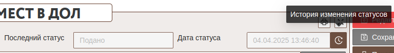 Рядом с датой последнего статуса есть кнопка для просмотра истории изменения статусов. Оператор может самостоятельно запросить статус через API. Но лучше настроить автоматических опрос статусов анкет через меню Настройки - Сервис - Настройка планировщика добавив вызов команды campskirov:status-update (Бронирование мест в ДОЛ. Запрос статусов для заявок).