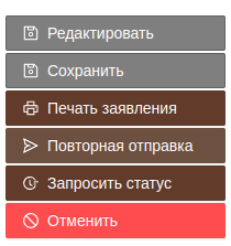При необходимости можно изменить анкету и отправить ее повторно нажав кнопку Повторная отправка. При этом анкета будет обновлена на стороне сервиса и в списке статусов будет отображен статус в момент обновления анкеты. Не забывайте отправлять анкету повторно после редактирования на стороне МФЦ.