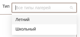 Фильтр Тип позволяет отобразить лагеря соответствующие выбранному типу. Список вариантов для данного фильтра формируется автоматически, с учетом всех возможных вариантов.