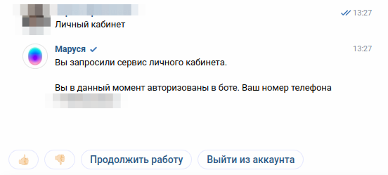 После авторизации пользователь увидит дополнительные сервисы, которые доступны только после авторизации. Большая часть сервисов будет требовать работу через чат с Марусей, т.к. количество возможных значений для выбора будет больше.
