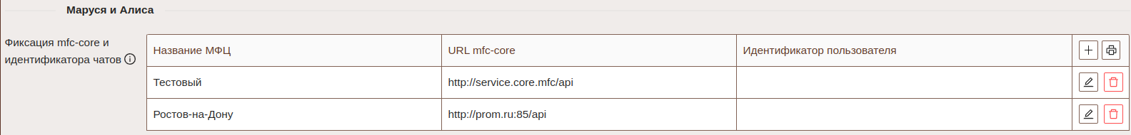 Если колонку с Марусей необходимо жестко привязать к определенному серверу МФЦ укажите Идентификатор пользователя, под которым авторизована данная станция. При этом ряд сервисов будет недоступен (выбор мфц и личный кабинет).