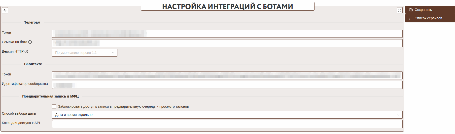 Настройка интеграций с ботами
