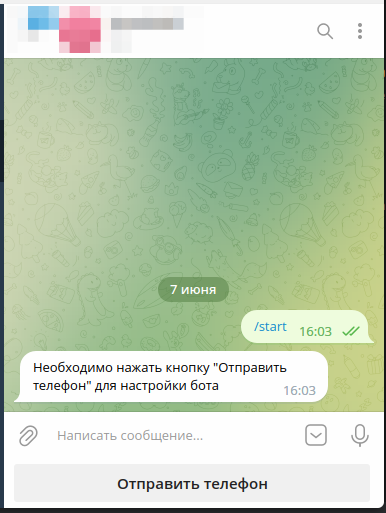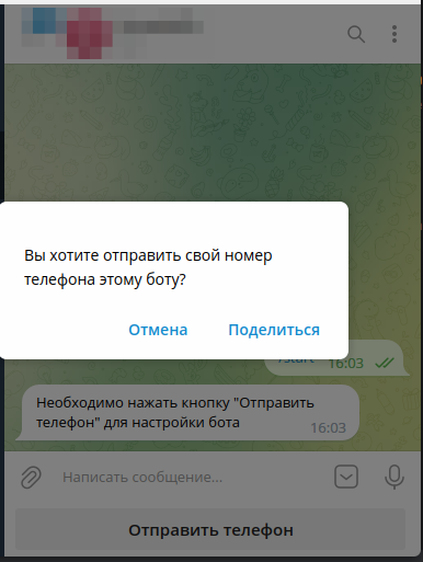 При начале взаимодействия с ботом придет запрос с просьбой отправить номер телефона для дальнейшего отправления уведомлений.