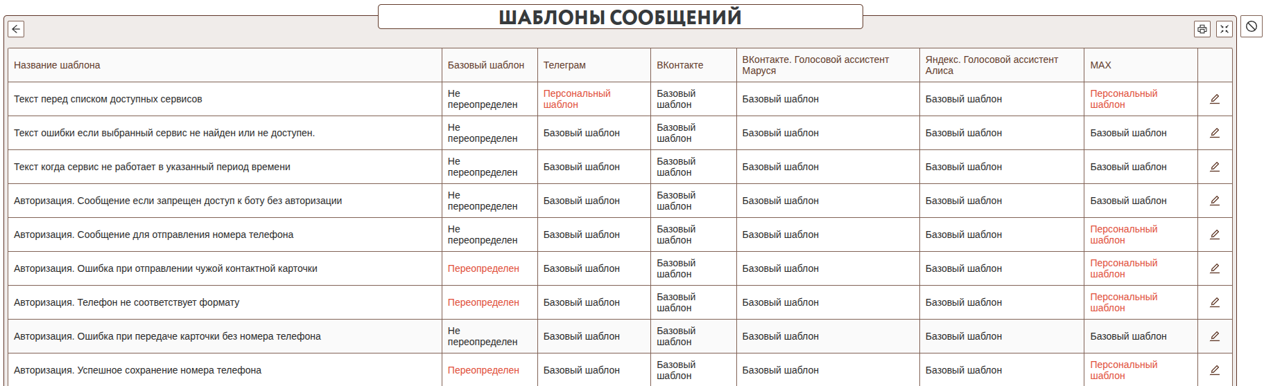 Редактирование шаблонов сообщений