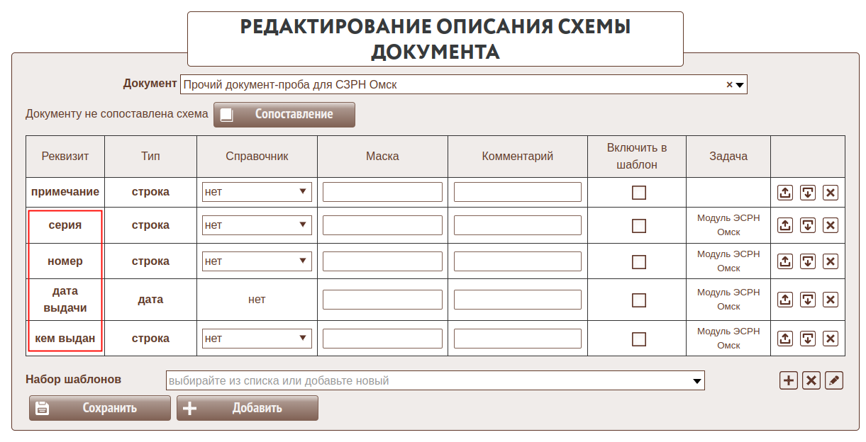 - Вид сведений требует для каждого переданного документа обязательно указывать реквизиты "Номер", "Серия" (при наличии) , "Дата выдачи", "Кем выдан". Для реализации этого требования все документы, сканы которых передаются, должны в списке реквизитов иметь реквизиты