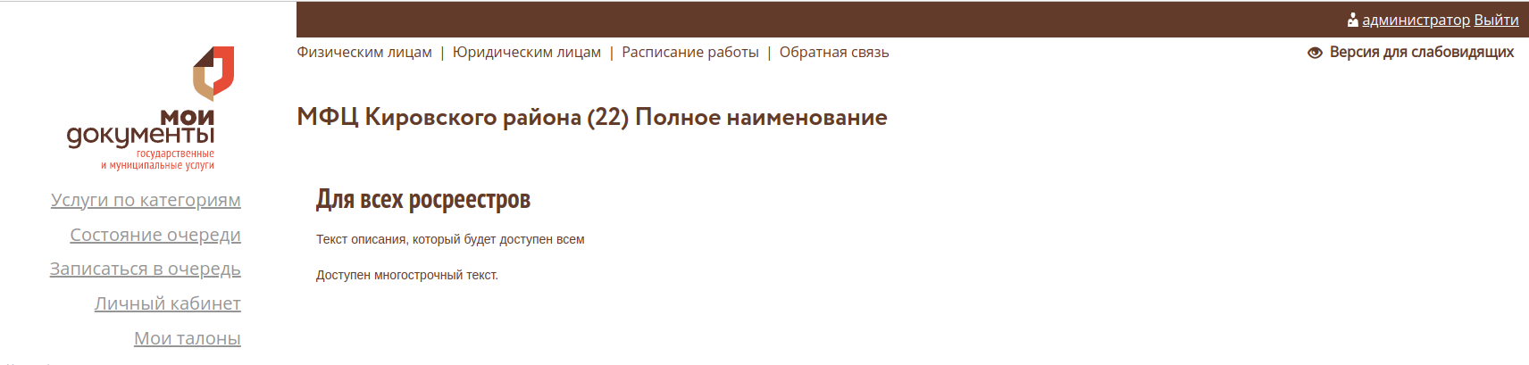 В данный момент доступна возможность просматривать информацию об услугах, которые оказывает МФЦ.