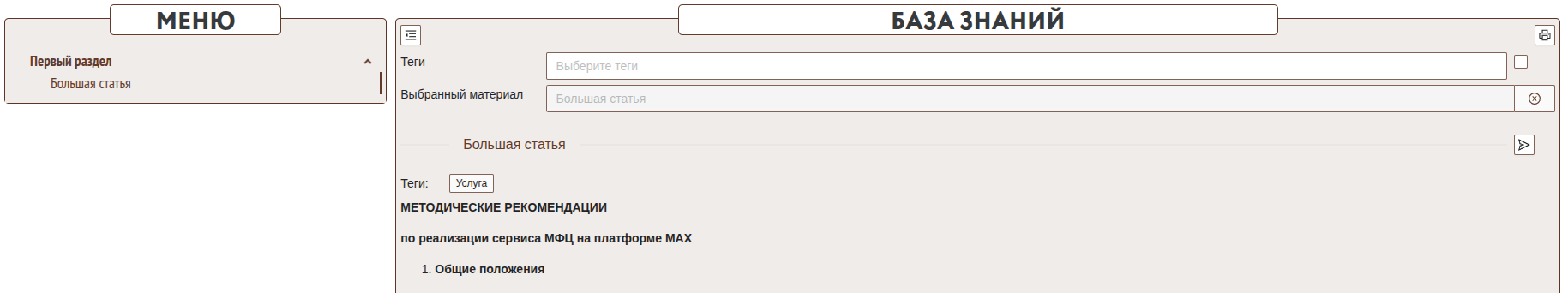 Данный модуль позволяет сотрудникам получить информацию из базы знаний системы МФЦ.