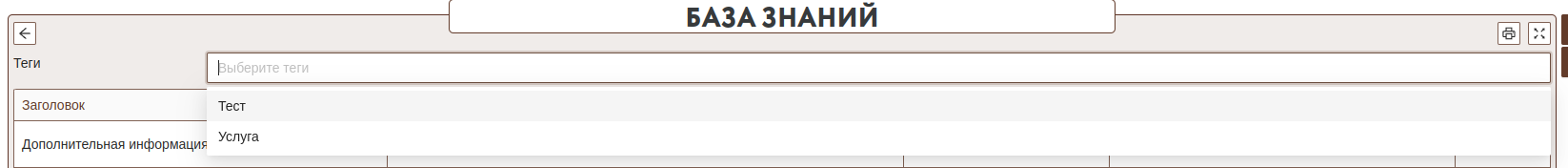 При просмотре информации в базе знаний будут отображаться подходящие записи в соответствии с тегами просматриваемой информации. Кроме описания будет видно список тегов для которых подходит данная информация.