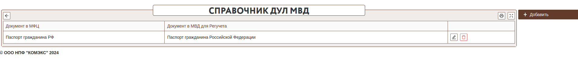 Модули->МВД СМЭВ3->Настройка ДУЛ для МВД.