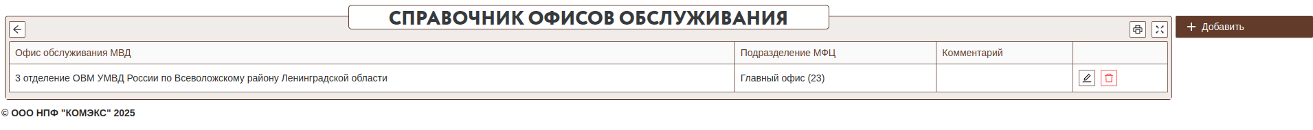 "Справочник офисов обслуживания" (Модули->МВД СМЭВ3->Настройка офисов обслуживания). Это позволит автоматически выбирать