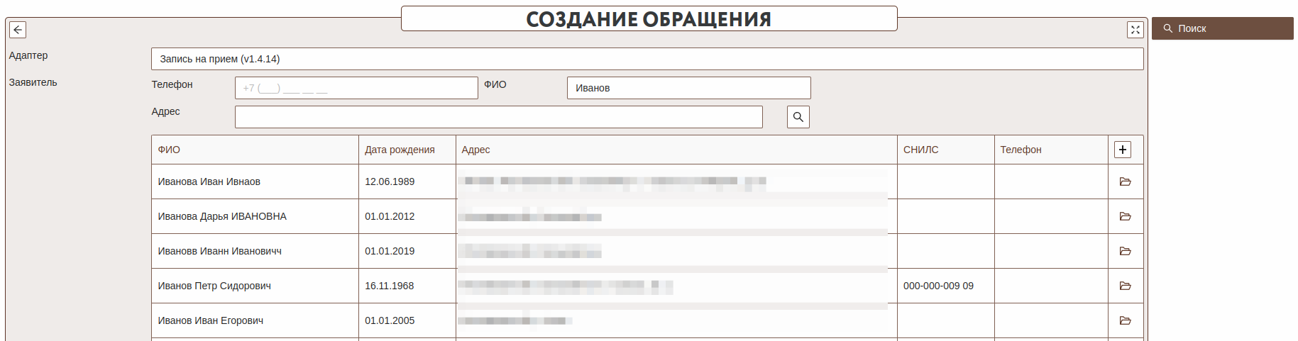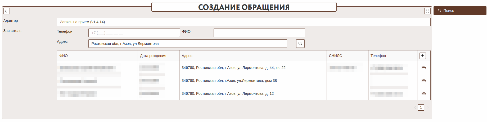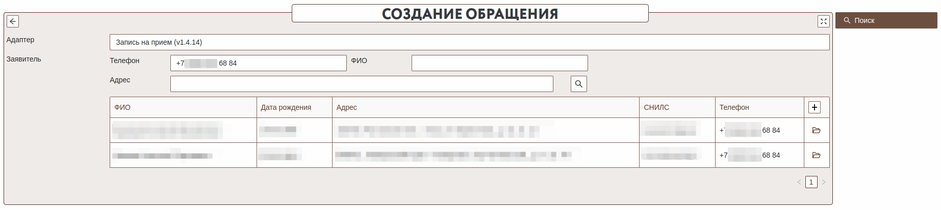 Поиск по номеру телефона отобразит всех заявителей с указанным номером телефона