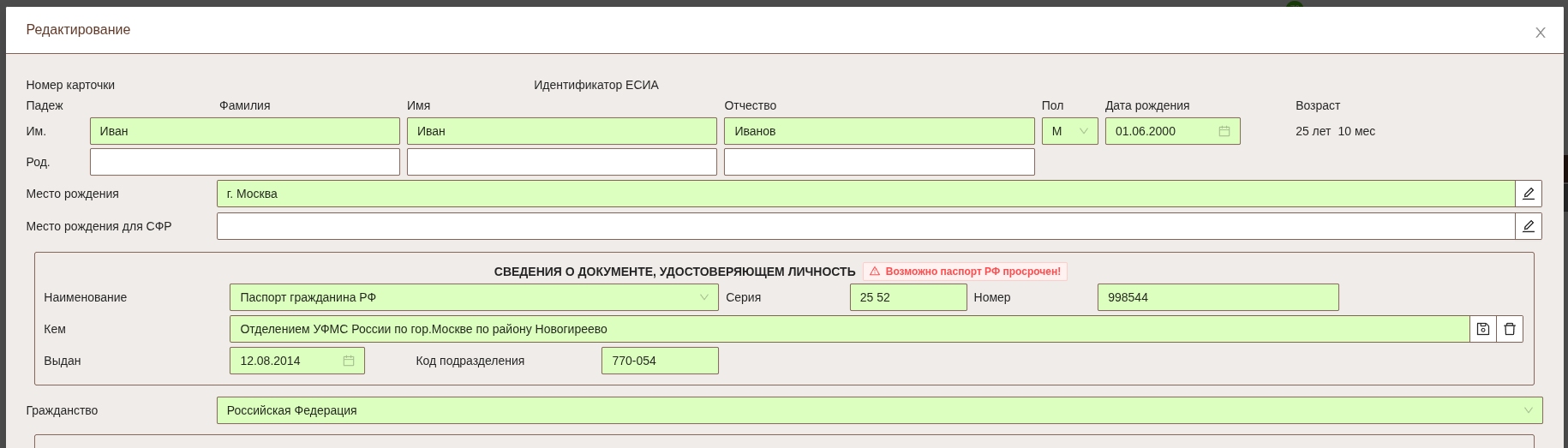 Если в системе будет найдена 1 или больше карточек с подходящими данными система ограничит выбор и не позволит сохранить данные в чужие карточки.